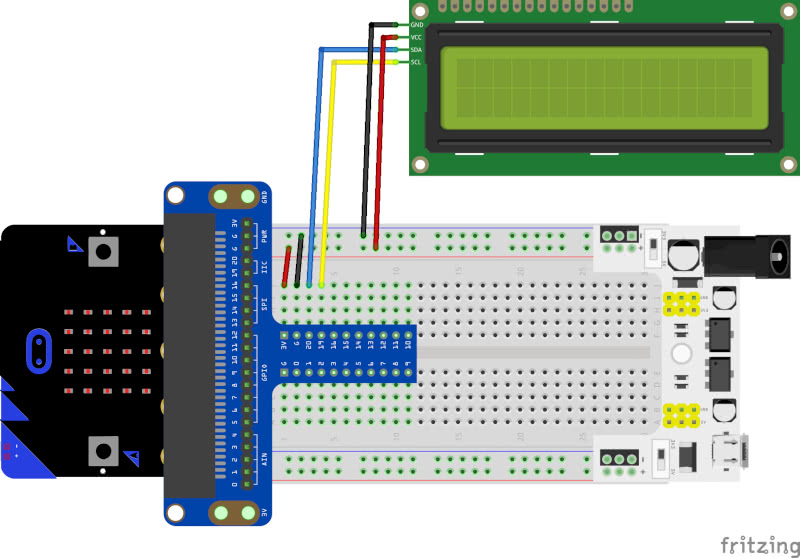 マイクロビットとLCD1602の接続は下記になります。